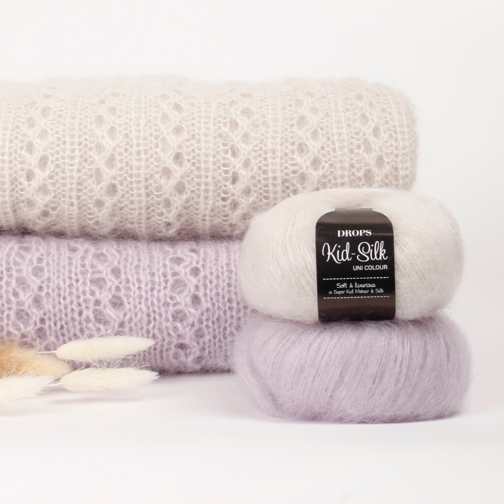 Eine luxuriöse Mischung für filigrane Projekte oder ein edles Garn zum Kombinieren - das ist Drops Kid-Silk. Der Mix aus Mohair und Maulbeerseide zaubert dir einzeln verstrickt federleichte Projekte mit einem edlen Look auf die Nadeln. In Kombination mit einem dickeren Garn verleihst du deinen Ideen einen flauschigen und seidigen Touch. Ob Tücher, Tops oder Pullover, Drops Kid-Silk wird deiner Haut angenehm schmeicheln und garantiert neue Lieblingsteile hervorbringen.