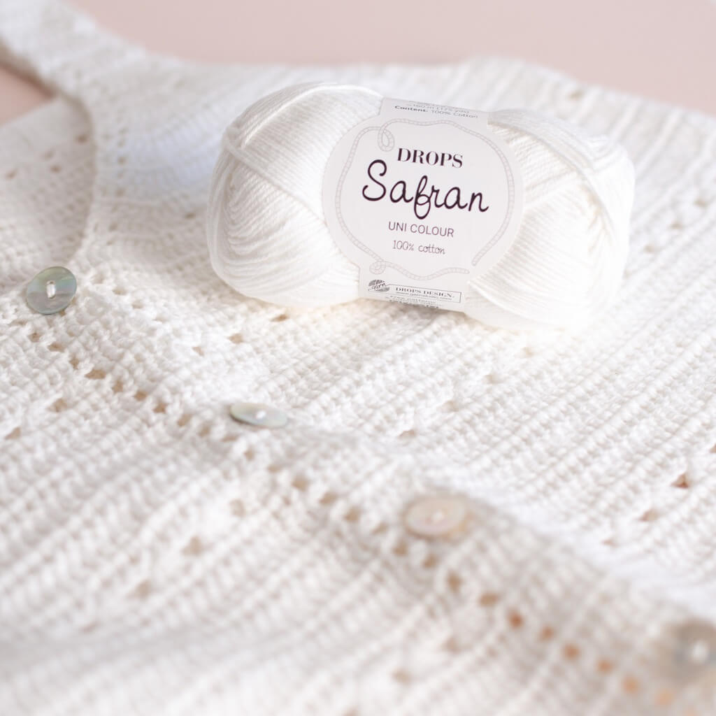 Das Safran Garn von Drops aus ist aus langfaseriger, gekämmter ägyptischer Baumwolle gesponnen. Die einzelnen Fäden werden zunächst paarweise verzwirnt und dann nochmals verzwirnt, wodurch ein dauerhafter Faden mit strapazierfähigen Eigenschaften entsteht. Das Garn überzeugt durch seinen Glanz, die Weichheit und die schöne Farbpalette.