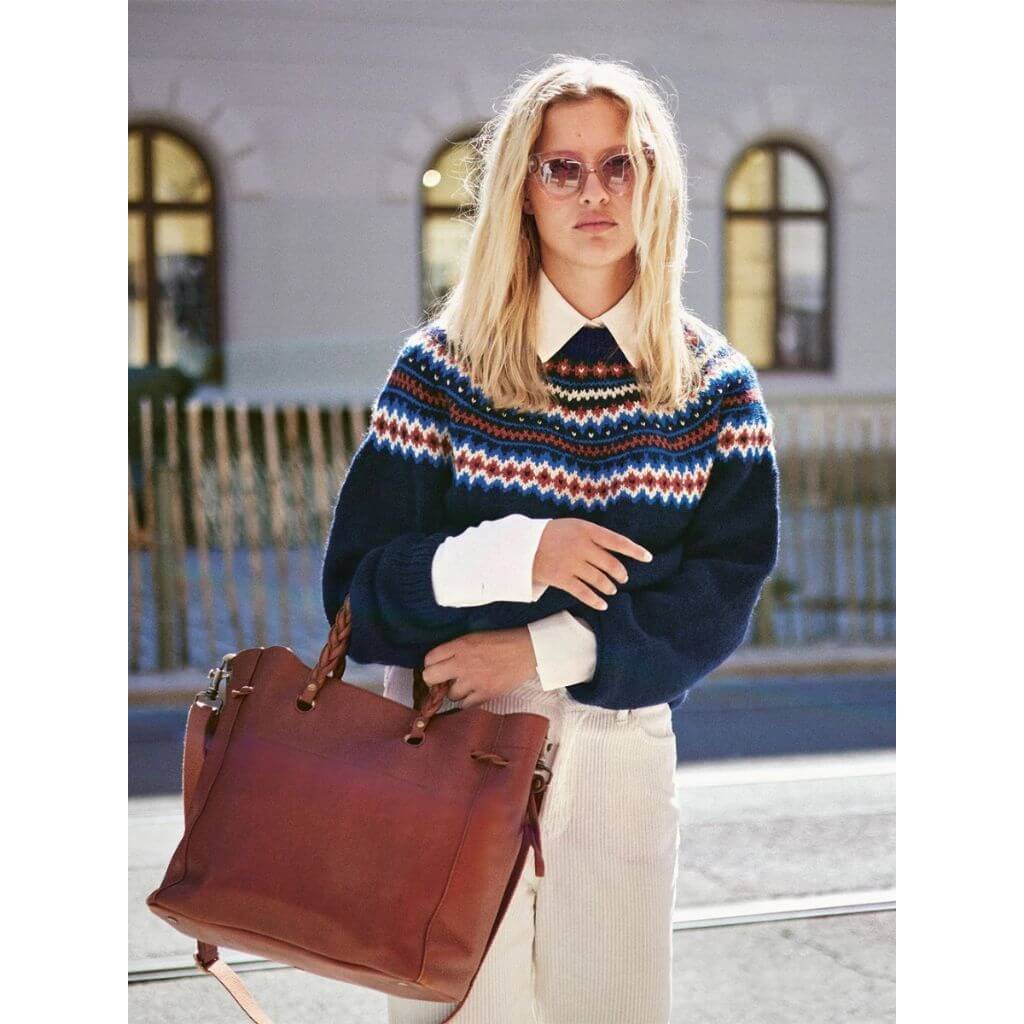 Das Set eignet sich für Strickerinnen, die Erfahrung mit Musterarbeit nach Diagramm haben und einen Pullover mit traditioneller Rundpasse fertigen möchten. Die Technik ermöglicht dir ein gleichmäßiges Musterteil und einen harmonischen Übergang zur Passe.