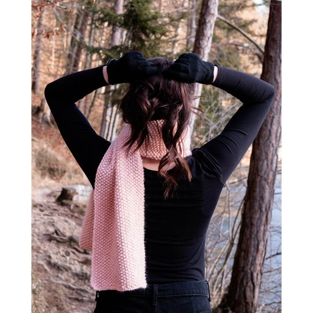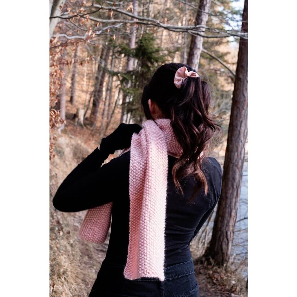 Der Beginner's Bliss Scarf von Wisteria Knitting ist eine Anleitung für einen Schal im Perlmuster – ideal für den Einstieg ins Stricken. Du arbeitest durchgehend im Wechsel von rechten und linken Maschen, was eine strukturierte Oberfläche ergibt, die auf beiden Seiten gleich aussieht.