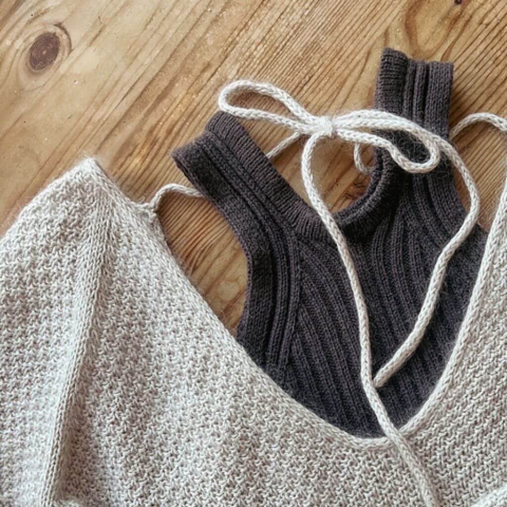 - Verwendetes Garn: Sandnes Garn Tynn Line (53% Baumwolle, 33% Viskose, 14% Leinen) und Sandnes Garn Tynn Silk Mohair (57% Mohair, 28% Seide, 15% Wolle)