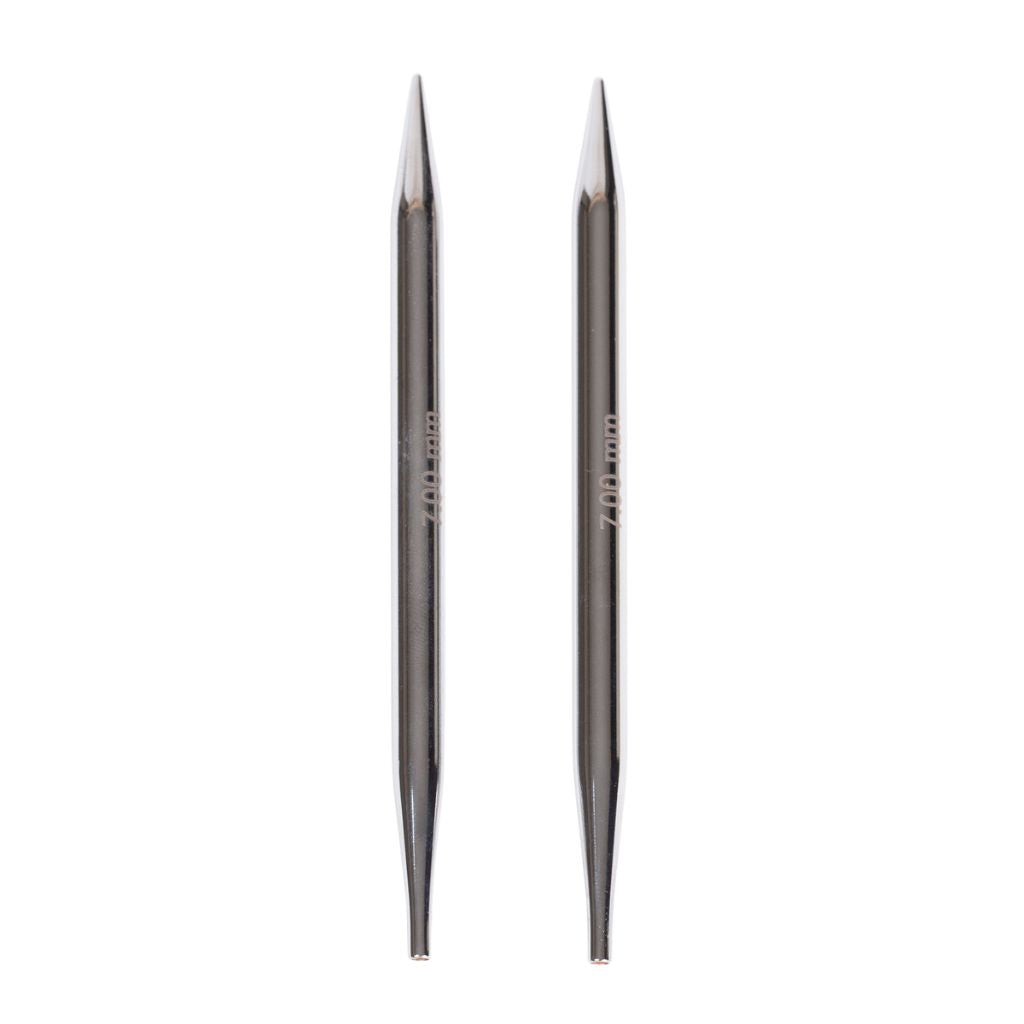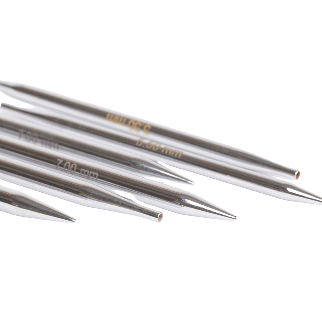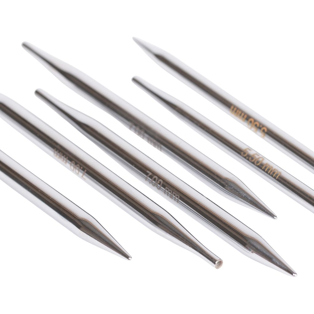 Die Nadelspitzen aus vernickeltem Messing erwärmen sich angenehm in deinen Händen und sorgen für geschmeidiges Gleiten der Maschen. Das Gewindesystem lässt sich einfach bedienen und sitzt sicher.