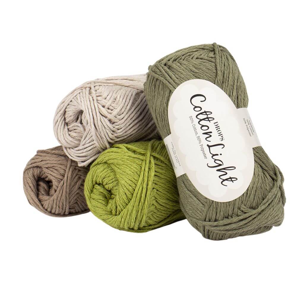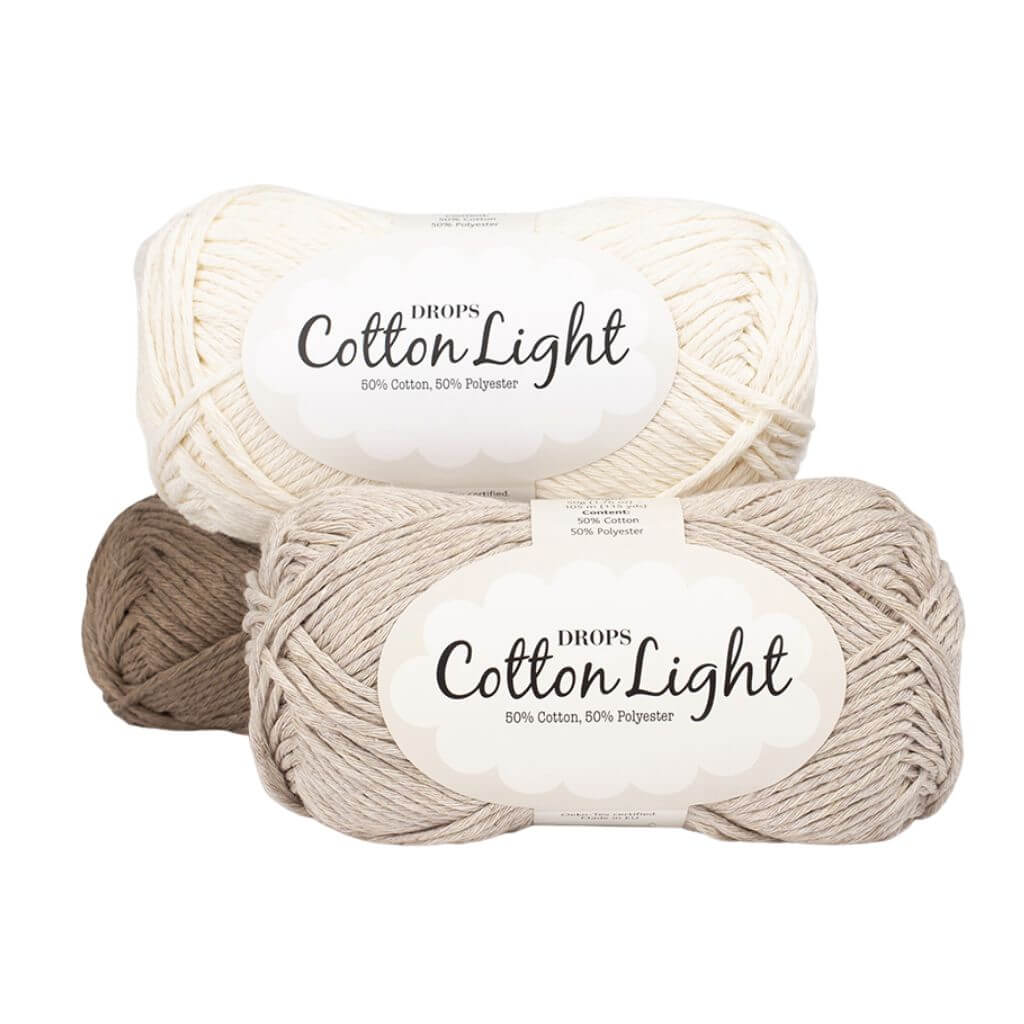 Das Cotton Light Garn von Drops ist ein Baumwoll-Mischgarn aus 50% Baumwolle und 50% Micro-Polyester. Die Spinnart mit vielen Einzelfäden erzeugt ein klares und gleichmäßiges Maschenbild. Die Microfasern sind dünner als Seidenfasern und nehmen keine Feuchtigkeit auf.
