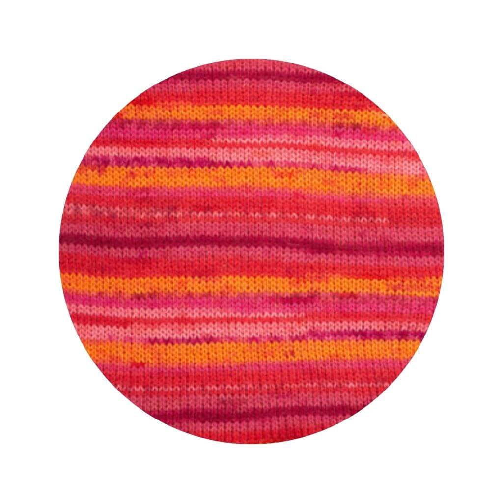 Die print-Farben werden mit der "Fancy-dye"-Methode produziert, wodurch kleinere Variationen in Farbnuancen und Musterung entstehen - das macht jedes Knäuel einzigartig.