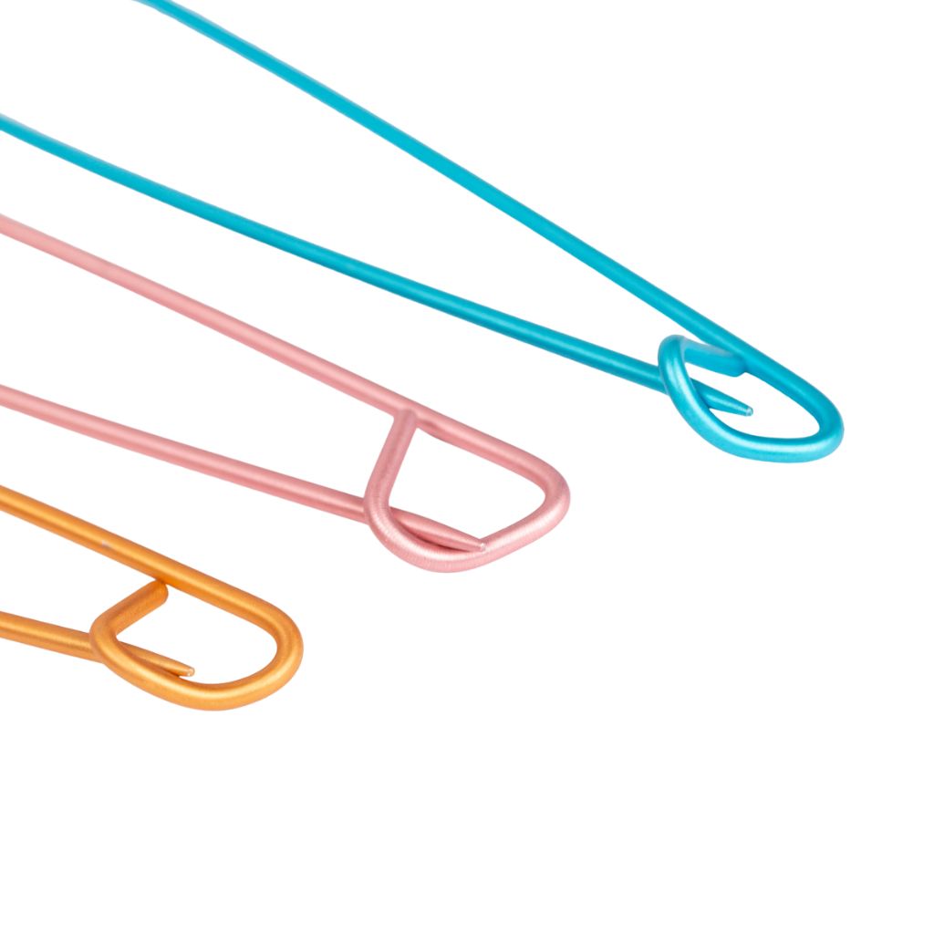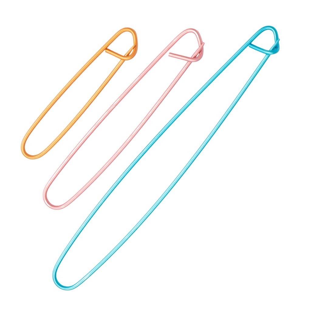 Du kannst die Maschen einfach vom Strickzeug auf den passend großen Halter schieben und später problemlos wieder aufnehmen. Das verhindert, dass sich Maschen lösen oder verloren gehen. Besonders praktisch sind sie auch beim Anprobieren von Strickstücken, wenn noch nicht alle Teile fertiggestellt sind.