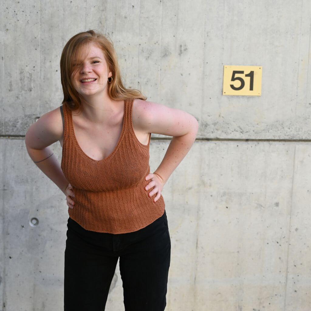 Das Ellie Summer Top von Rust Knitwear ist eine Strickanleitung für ein figurbetontes Top mit tiefen Armausschnitten und V-Ausschnitt. Du strickst das Top nahtlos von oben nach unten, beginnend mit dem Rückenteil. Anschließend werden die Vorderteile separat gearbeitet und alle Teile in der Runde zusammengefügt. Das durchgehende I-Cord-Detail umrahmt das gesamte Top – vom Anschlag über die Träger bis zum Abschluss.
