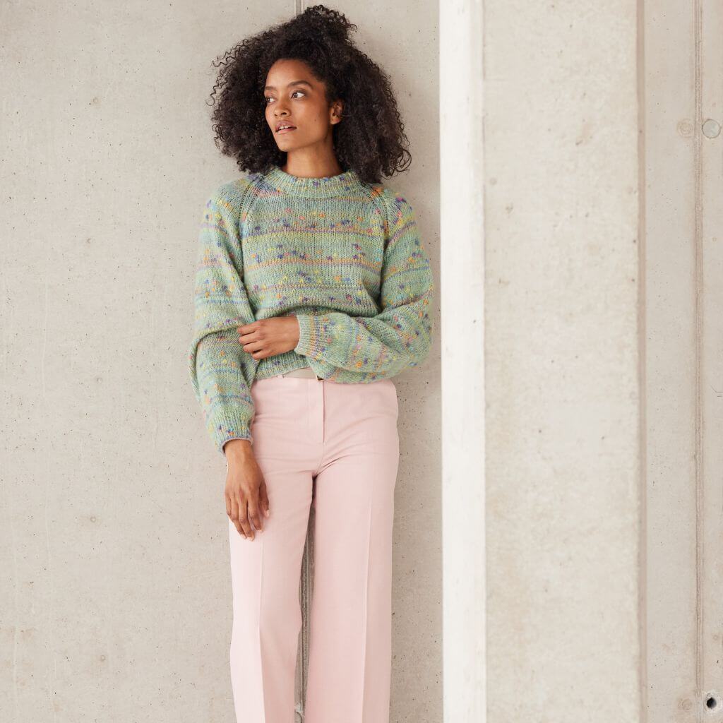 Ein schlichter Schnitt, der mit dem farbenfrohen Garn Cassata zu einem echten Hingucker wird. Diese Strickanleitung aus dem Filati Journal 70 zeigt dir, wie du einen Raglanpullover in Einzelteilen strickst.