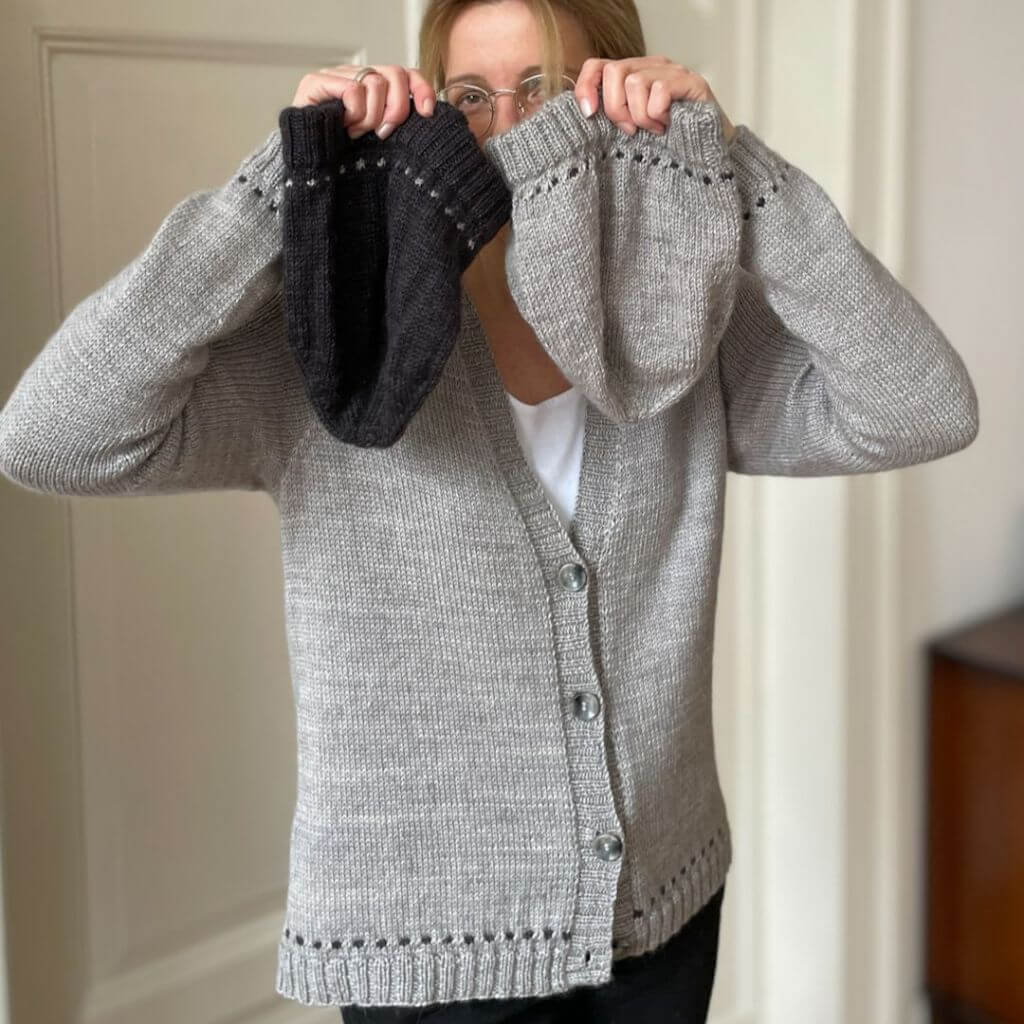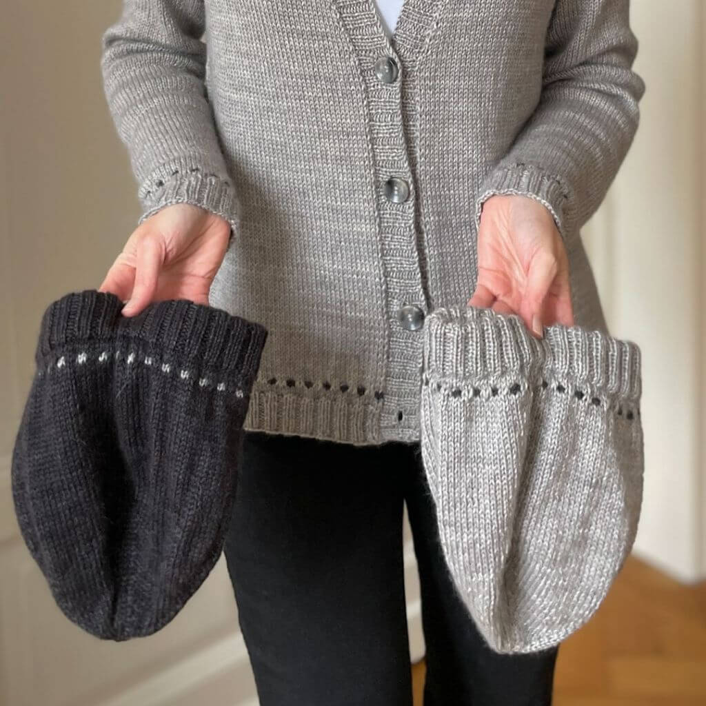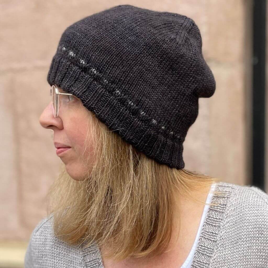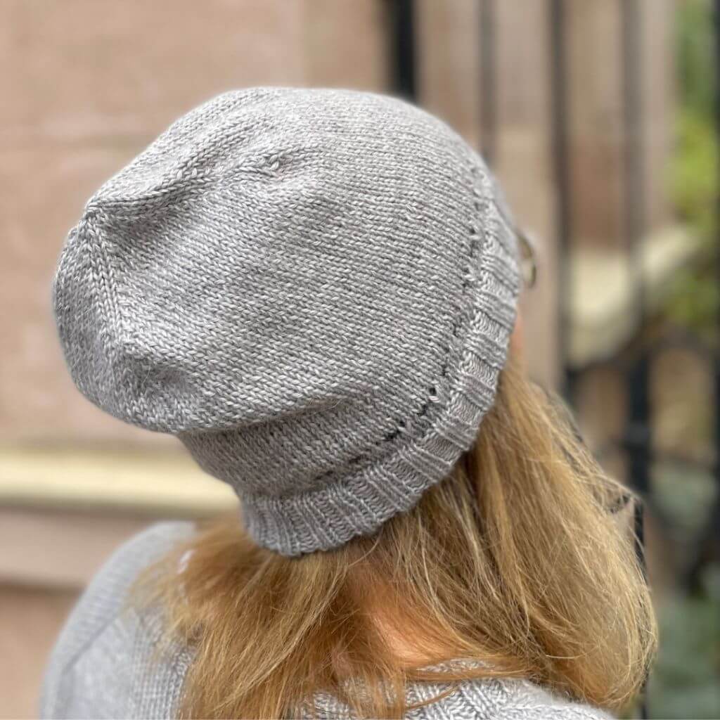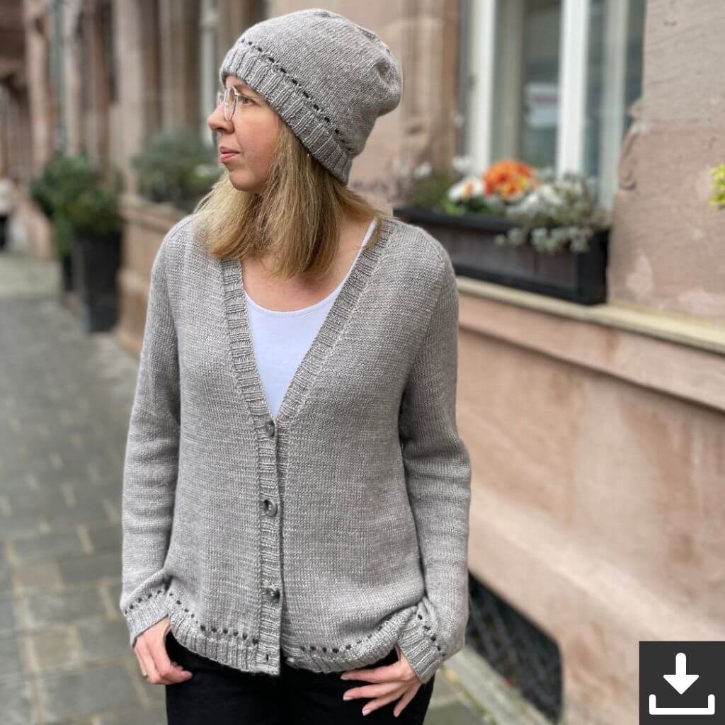 Das doppelte Rippenbündchen beginnt mit einem provisorischen Maschenanschlag nach Judy's Magic Cast-On. Die Anleitung führt dich Schritt für Schritt durch den Strickprozess – vom Bündchen über den Hauptteil bis zu den Abnahmen an der Spitze.