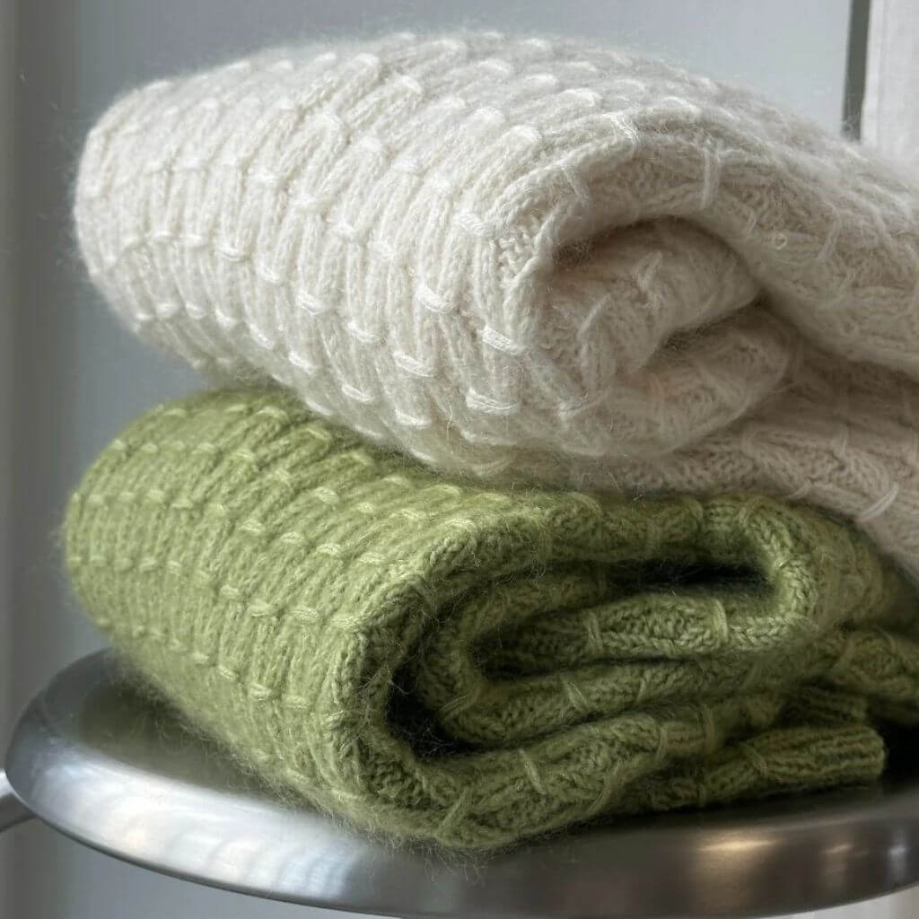 - Verwendetes Garn: Sandnes Garn Sunday (100% Merinowolle) zusammen mit Sandnes Garn Primo Tynn Silk Mohair (75% Super Kid Mohair, 25% Seide)