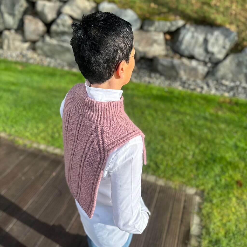 Mit der Catelyn Collar Strickanleitung von Kerstin Ritter strickst du einen Kragen als Schalersatz, der sich perfekt unter Jacken und Mänteln tragen lässt. Das Besondere sind die dekorativen Verzopfungen, eingebettet in Hebemaschen und Perlmuster. Der Kragen wird vom Rückenbündchen aus gearbeitet, formt durch attraktive Abnahmen die Schultern und erhält durch Zunahmen den Halsausschnitt.