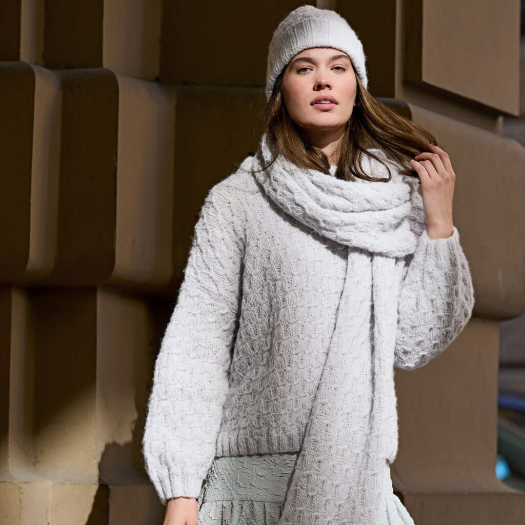 - Verwendete Garne: Lana Grossa Nebbia, Lana Grossa Lucciola, Lana Grossa Orsetto, Lana Grossa Winter Softness
