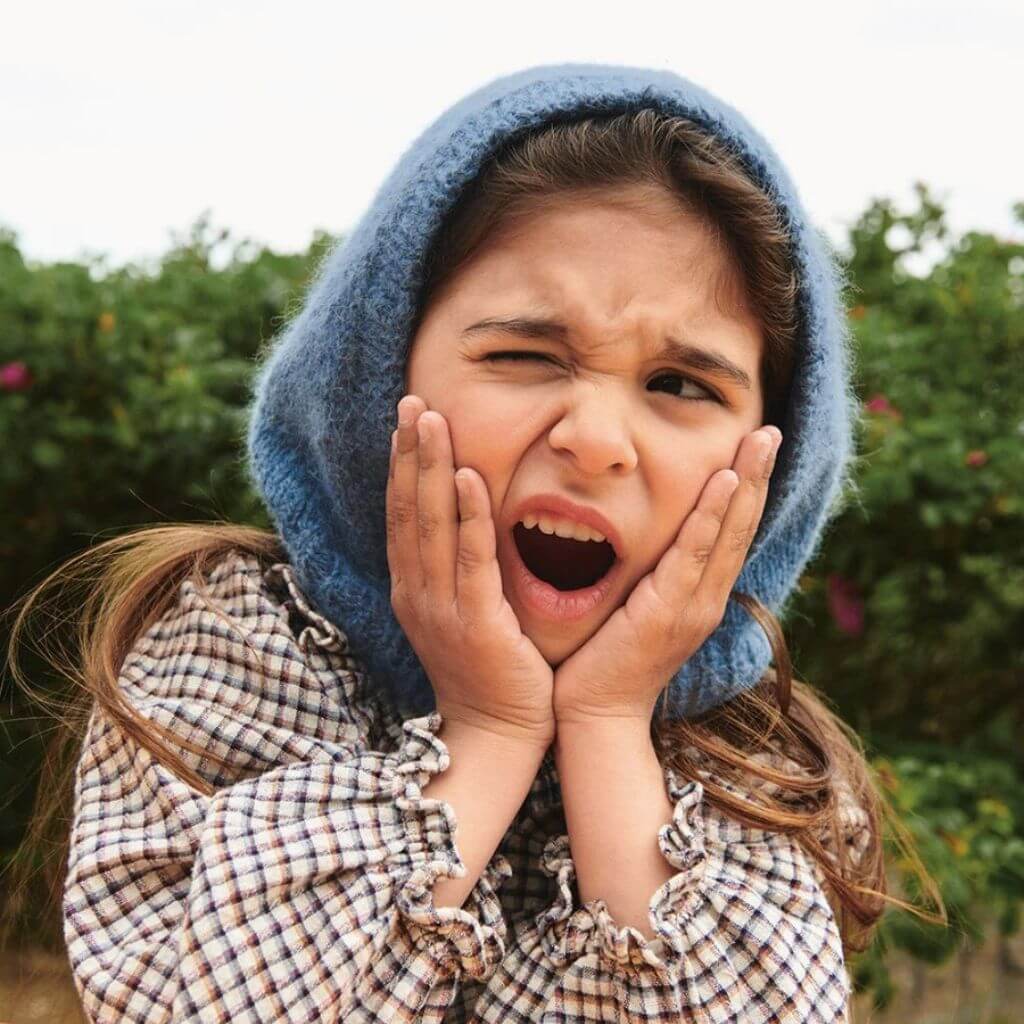 Die Hugsy Hood Junior von SANDNES GARN ist eine Strickanleitung für eine Kapuze für Kinder, die von oben nach unten gestrickt wird. Du verwendest die Garne Kos und Poppy für ein zweifarbiges Design. Verkürzte Reihen formen die Kapuze, die Oberseite wird nahtlos gearbeitet. Rund ums Gesicht nimmst du Maschen auf und strickst eine Rippenkante. Der Hals wird in Runden gestrickt für eine gute Passform.