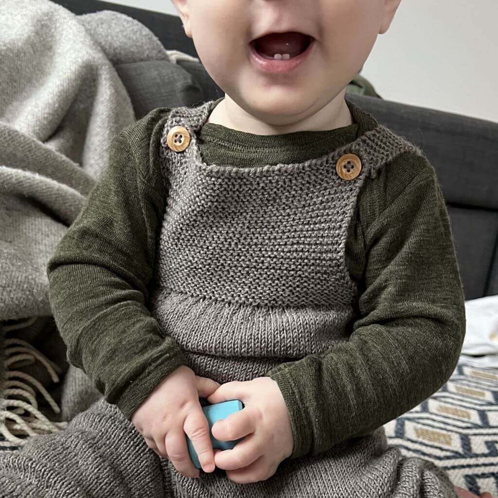Mit dieser Anleitung strickst du den NURIS Strampler - einen Babystrampler, der mit den Trägern beginnt und dann in Reihen und Runden bis zu den Fersen gestrickt wird. Das Design enthält zwei Anpassungsmöglichkeiten: Der Brust- und Rückenbereich in kraus rechts ist elastisch und kann sich dehnen. Die gerippten Beinabschlüsse können anfangs umgeschlagen und später ausgerollt werden, um die Beinlänge anzupassen.