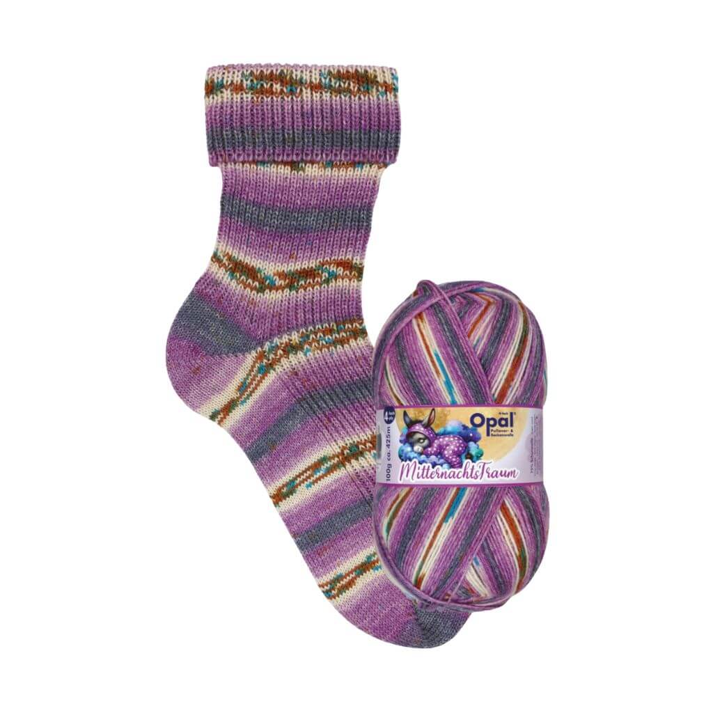 Die Mitternachtstraum Kollektion von Opal verwandelt jede Masche in ein kleines Nachtabenteuer. Du erhältst acht verschiedene Schlaf-Tier-Designs, die automatisch Streifen, Sprenkel und sanfte Farbverläufe beim stricken zaubern - ganz ohne Fadenwechsel.