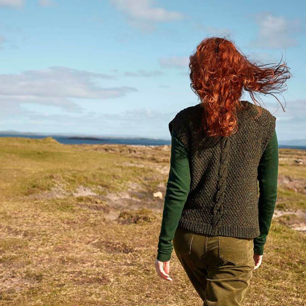 Diese Strickanleitung zeigt dir, wie du einen stylischen Pullunder mit zentralem Zopfmuster strickst. Du strickst den Pullunder getrennt in Vorder- und Rückenteil von unten nach oben. Im Anschluss schließt du die Nähte und arbeitest die Borten vom V-Ausschnitt und der Ärmel aus. Das verwendete Tweed-Garn sorgt für einen rustikalen Charakter deines Strickstücks.