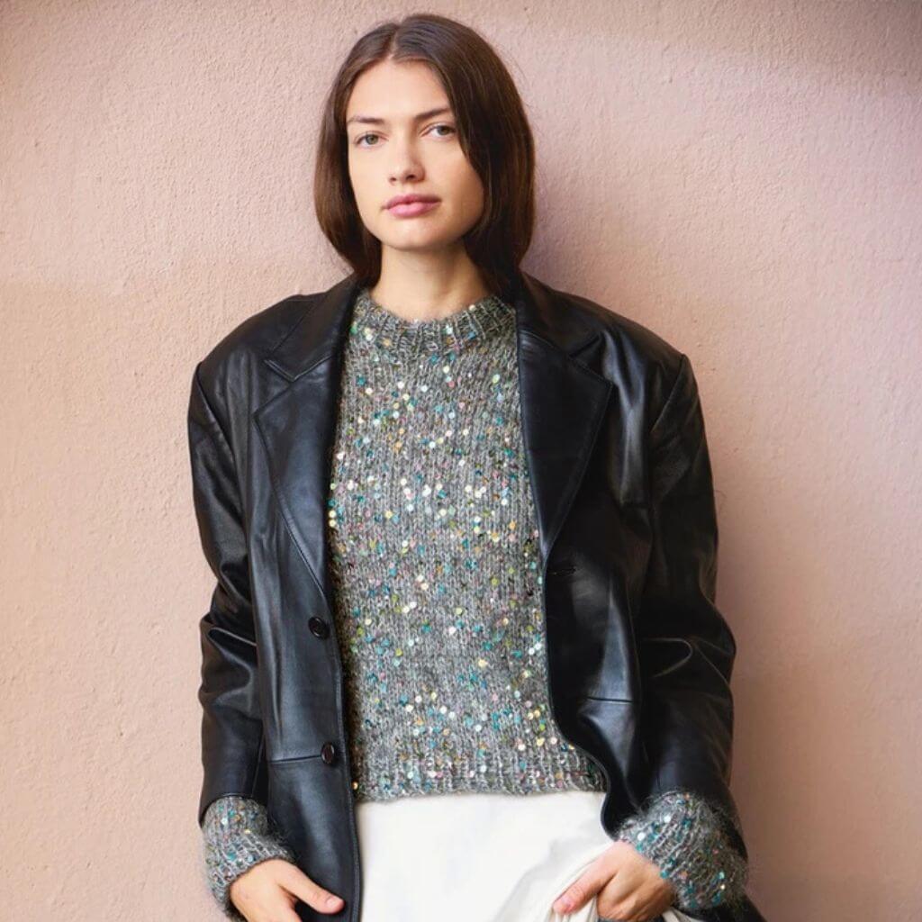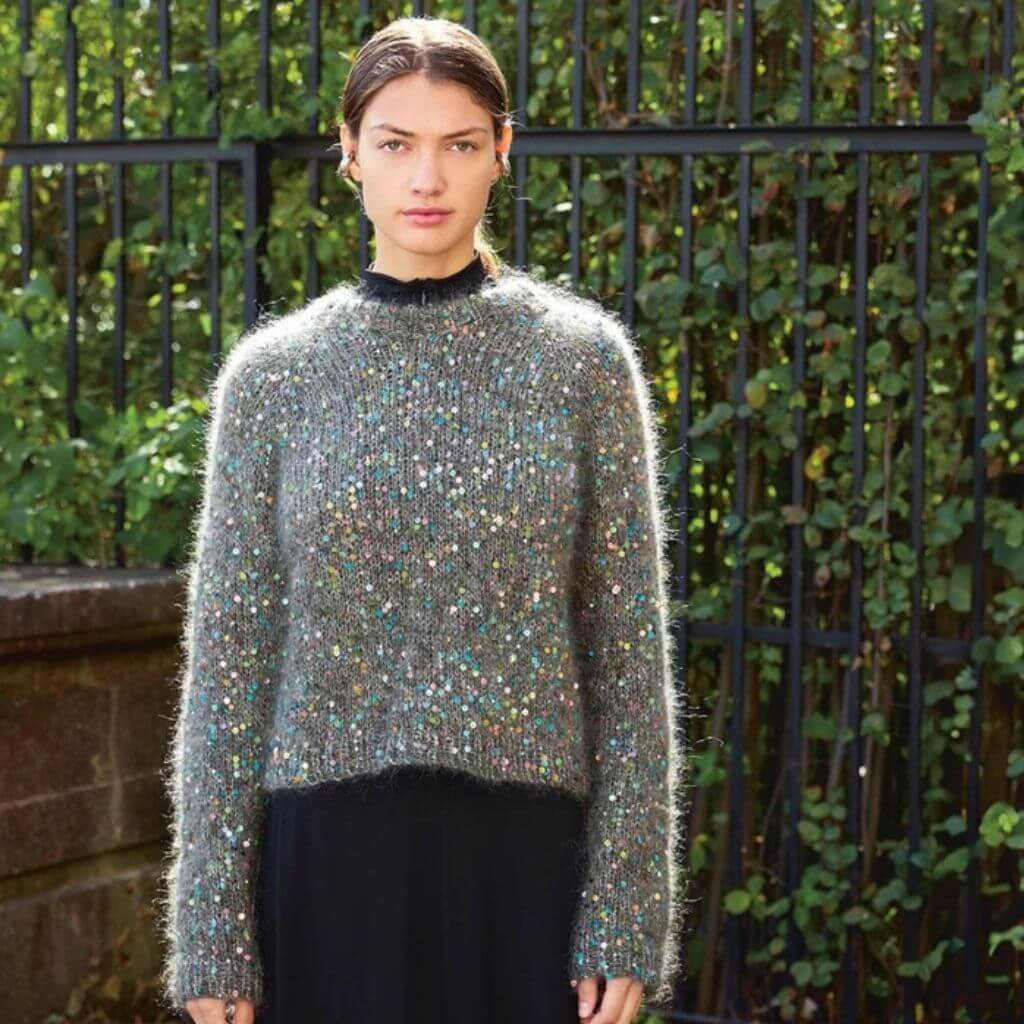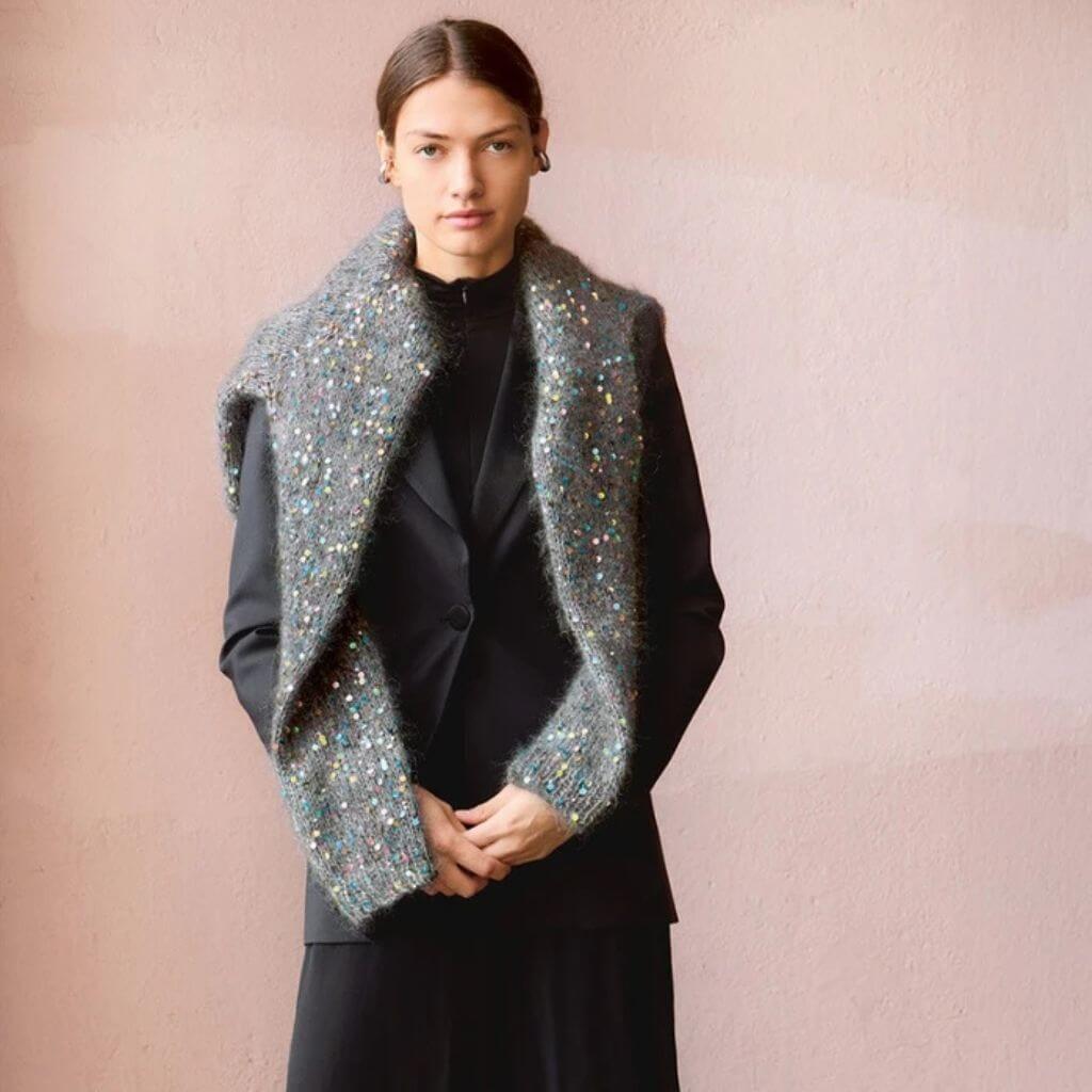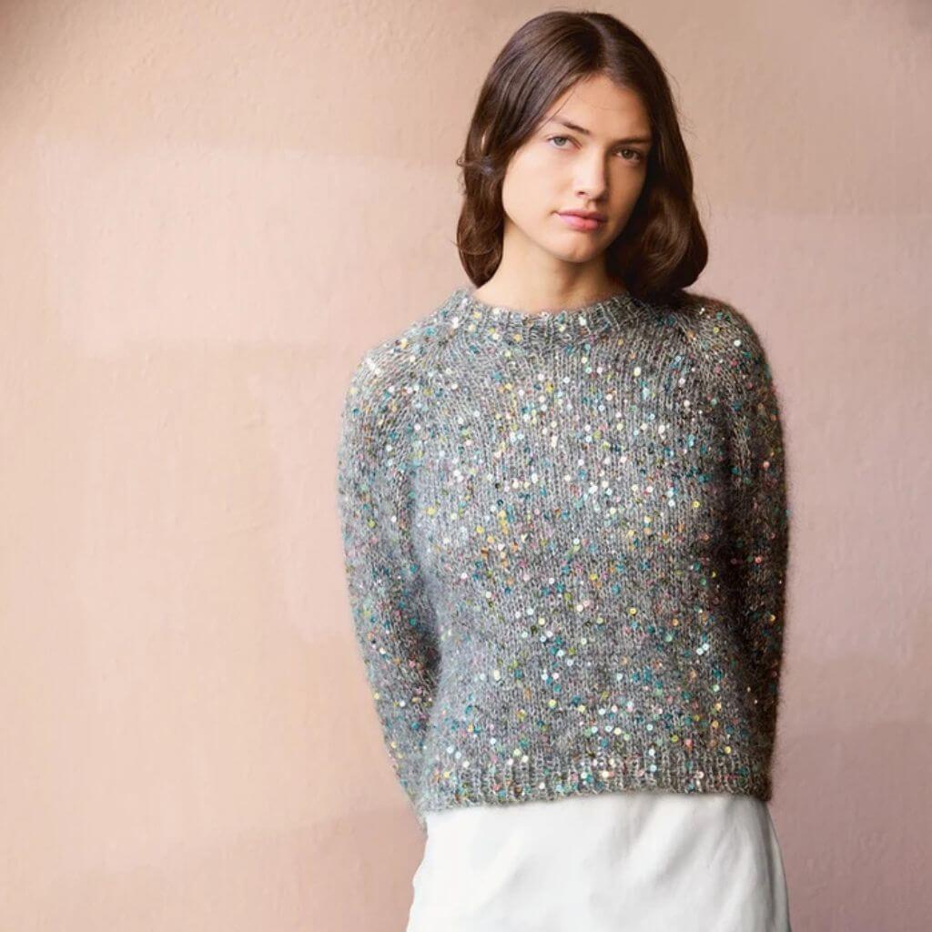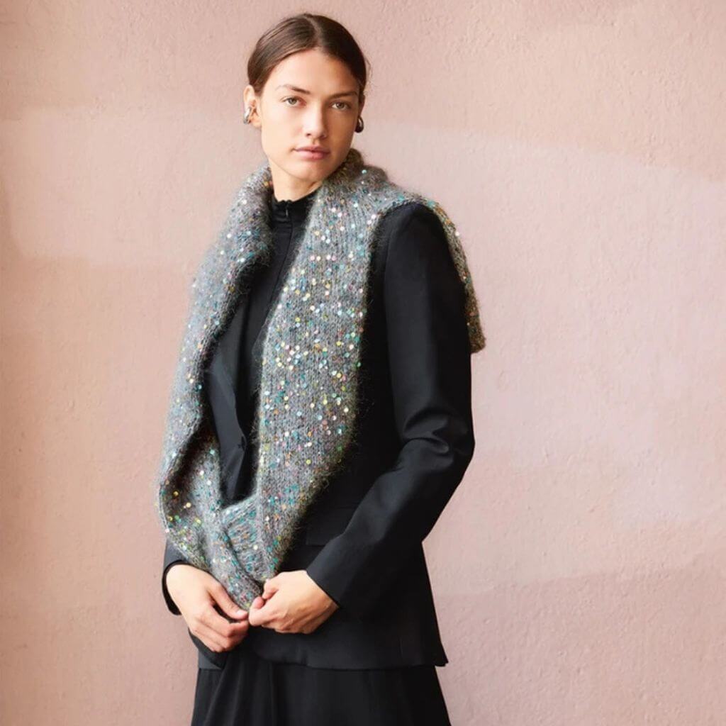 - Verwendetes Garn: Sandnes Garn Ballerina Chunky Mohair (77% Mohair, 18% Schurwolle, 5% Polyamid) und Paljett (55% Baumwolle, 45% Polyester)