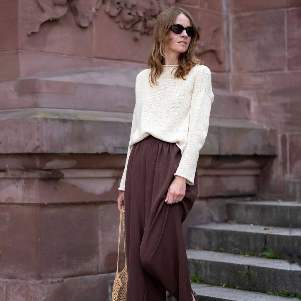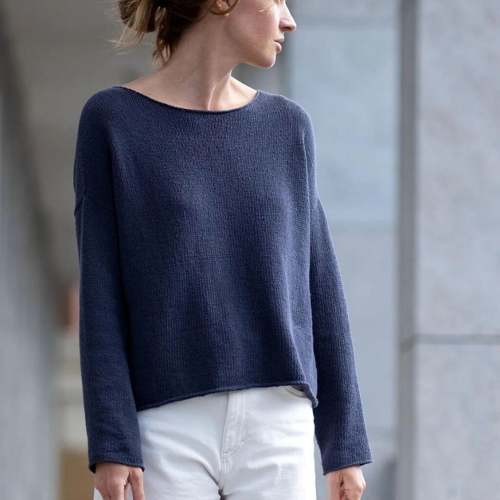 Die Strickanleitung SABAI Sweater von Susanne Müller zeigt dir, wie du einen Pullover mit U-Boot-Ausschnitt strickst. Der Schnitt ist weit und hat schmale Ärmel – oversized und gleichzeitig elegant. Die Anleitung eignet sich für Anfänger, da sie nur wenige Techniken erfordert.