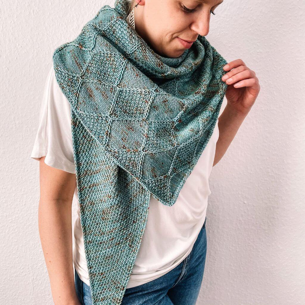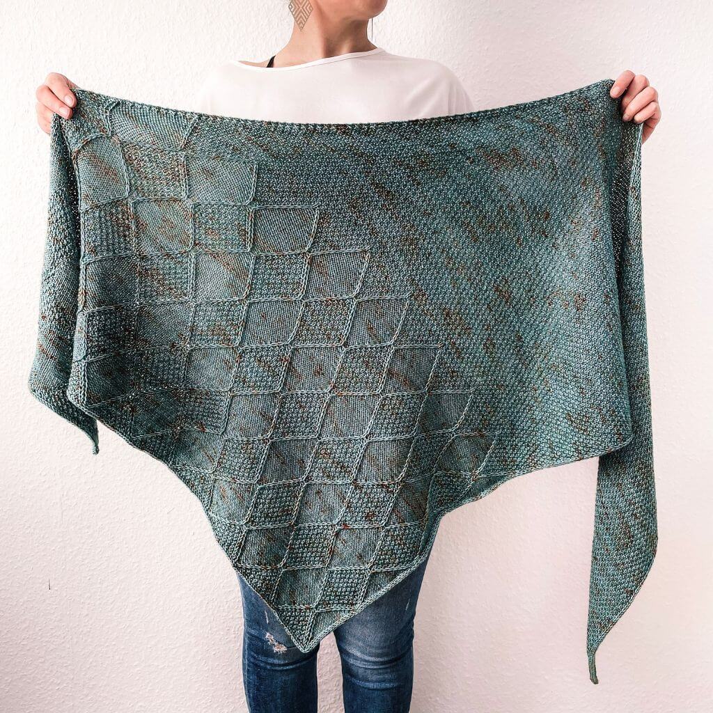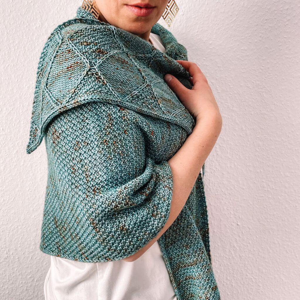 Die Rusty Romance Strickanleitung von Rina Lehmann zeigt dir, wie du ein asymmetrisches Dreieckstuch mit Rautenmuster strickst. Du arbeitest das Tuch seitlich mit kontinuierlichen Zunahmen und gestaltest die Borte durch verkreuzte Maschen. Das Muster kombiniert ein großes Perlmuster mit einem strukturierten Rautenrapport. Der I-Cord Abschluss gibt der Kante ein sauberes Finish.