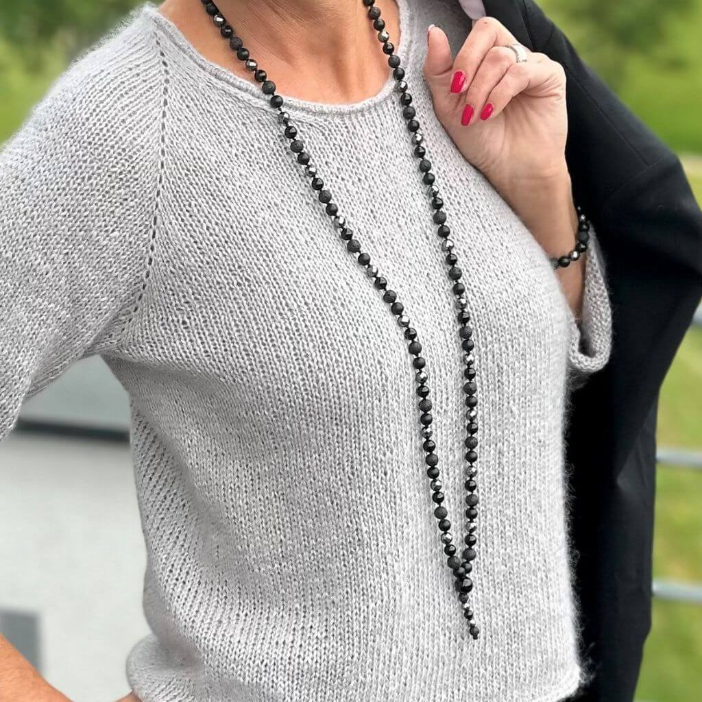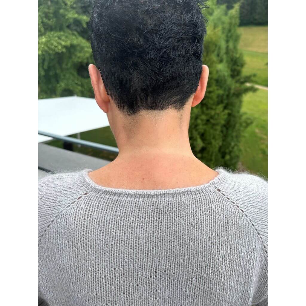 Du beginnst in Reihen, um den Halsausschnitt zu formen und danach werden beide Vorderteile zusammengefasst und in Runden weitergearbeitet. Die Raglanzunahmen sind einfach zu stricken und erzeugen eine edle Optik. Nach Beendigung der Zunahmen werden die Ärmelmaschen stillgelegt und der Rumpf in Runden beendet. Anschließend werden die Ärmel von oben nach unten gestrickt, dabei werden in regelmäßigen Abständen Maschen abgenommen. Zum Schluss werden Maschen für den Halsausschnitt aufgenommen und das Bündchen angestrickt.