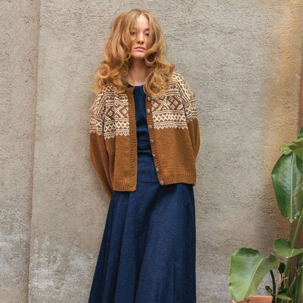 Die Setesdal Damekofte Modell 6a Strickanleitung von Sandnes Garn zeigt dir, wie du eine traditionelle norwegische Strickjacke mit charakteristischem Muster strickst. Das Design setzt auf das klassische Setesdal-Muster, das sich über die Passe und entlang der Vorderteile zieht.