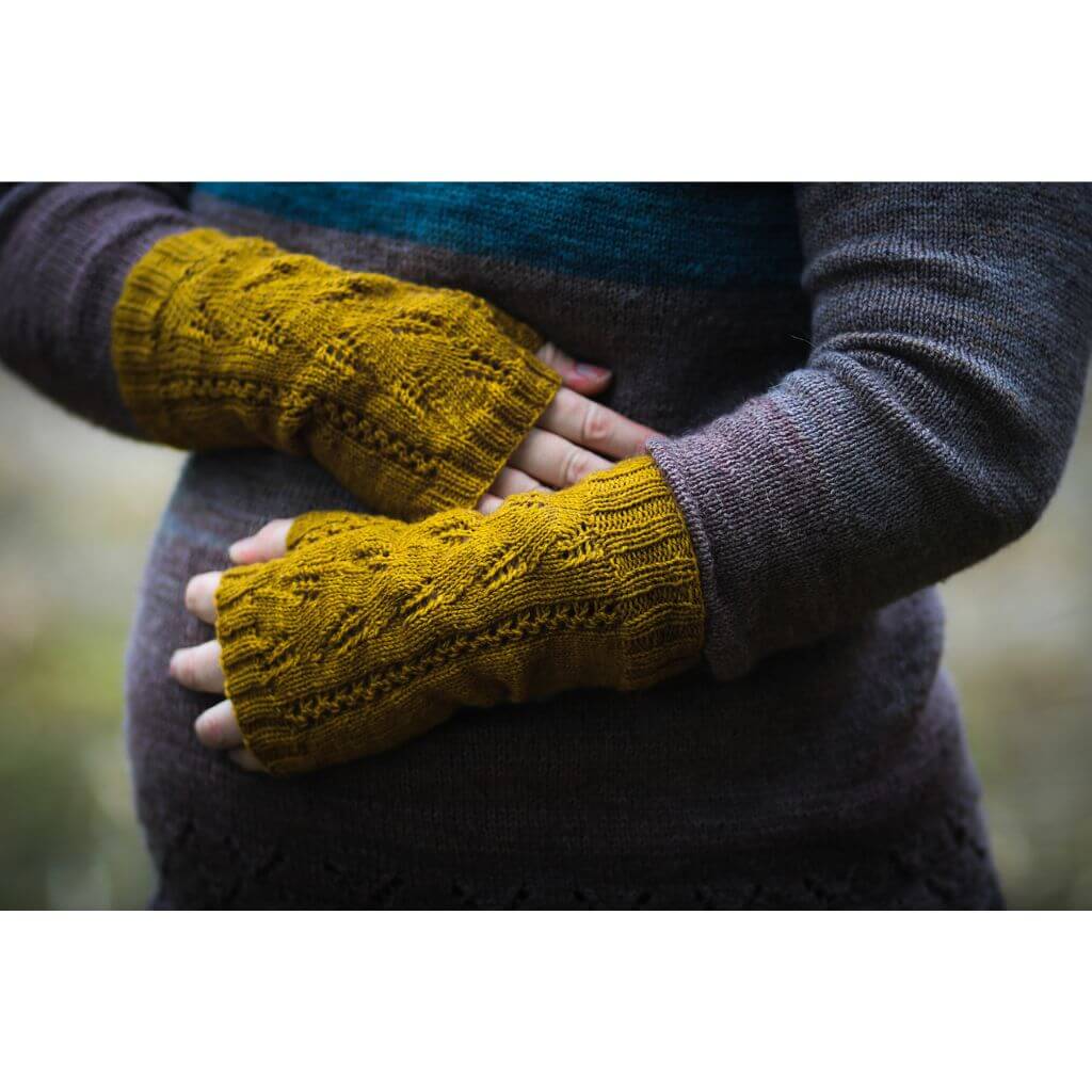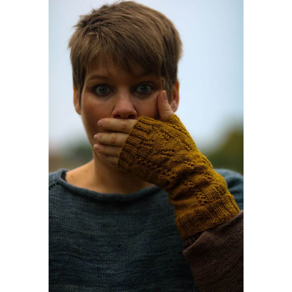Mit den Kornhandsker von Appelbanne Design strickst du Armstulpen mit einem filigranen Lochmuster auf der Vorderseite. Die Anleitung verwendet die Magic Loop Technik und führt dich vom Bündchen bis zum Daumenspickel. Fünf Größen von Kleinkind bis Dame ermöglichen eine passende Auswahl für verschiedene Handgelenkumfänge. Besonders praktisch: Das Lochmuster kannst du auf beiden Stulpen gegengleich arbeiten, indem du an unterschiedlichen Stellen im Diagramm beginnst. Die Konstruktion von unten nach oben in Runden macht das Stricken übersichtlich.