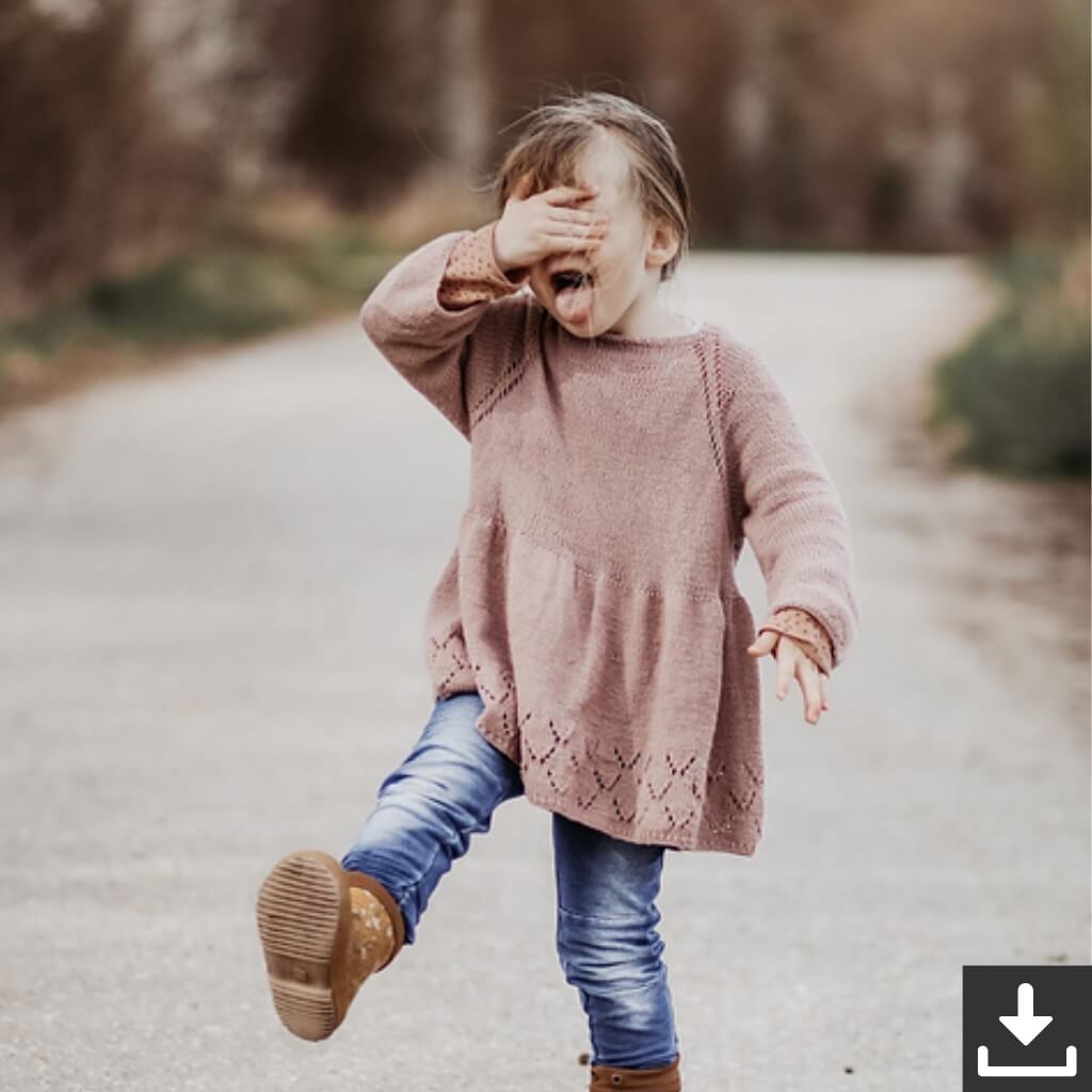 Die Enny Blus von Appelbanne Design ist eine Tunika im nordischen Stil für Kinder. Du strickst sie von oben nach unten mit Raglan-Konstruktion – ohne mühsames Zusammennähen einzelner Teile. Das Lochmuster am Rockteil setzt einen dezenten Akzent und macht das schlichte Design zum Hingucker. Der Tropfenausschnitt am Rücken wird mit einem Knopf oder zwei Kordeln geschlossen.