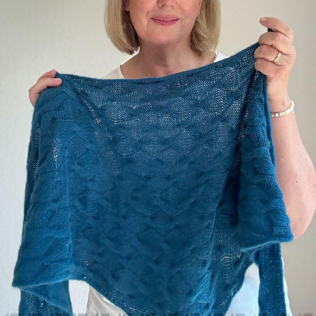 Das Tuch kannst du in drei verschiedenen Größen stricken: