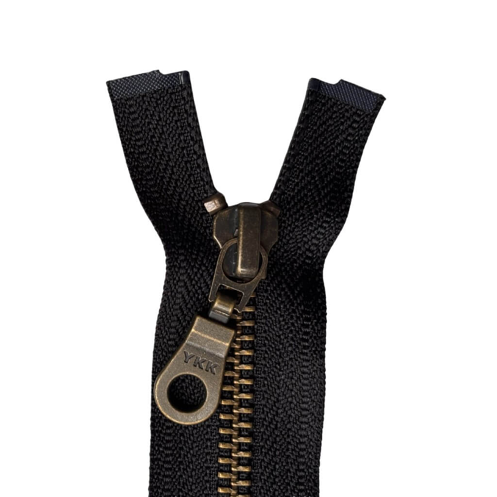 Für Jacken, Taschen oder Kissen sind Reißverschlüsse ein praktisches Zubehör, das meistens unverzichtbar ist. YKK Reißverschlüsse liefern dir ein modisches Zubehör in hochwertiger Qualität auf, die du dich auch bei hoher Beanspruchung verlassen kannst. Du erhältst die praktischen Helfer mit einem Schieber aus Metall in einem antiken Design. Der Reißverschluss ist teilbar und kann unten ausgehakt werden.